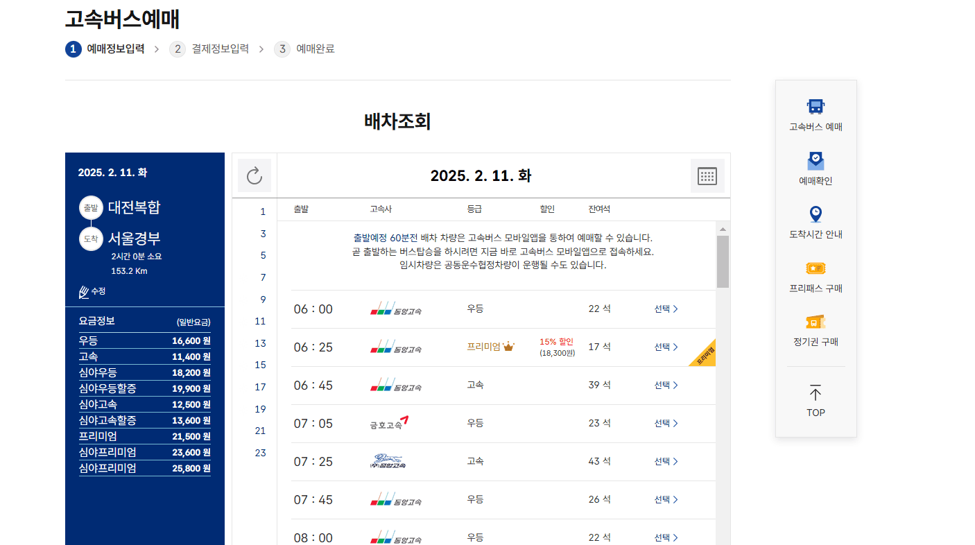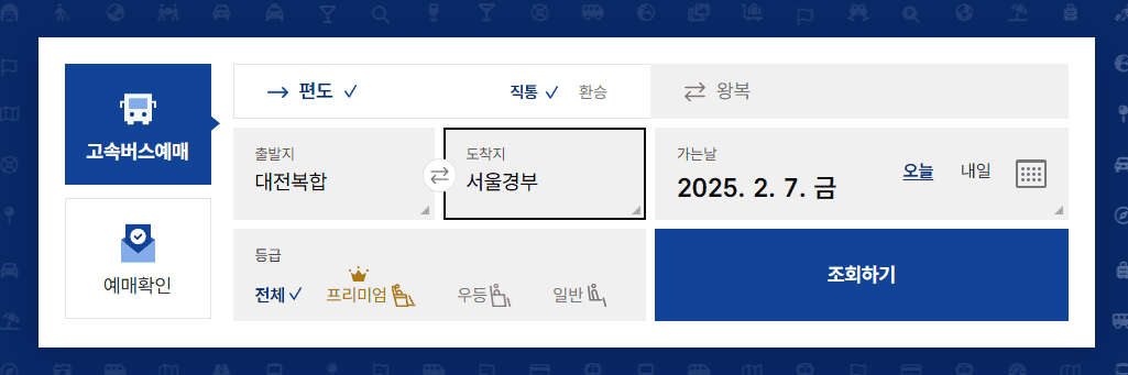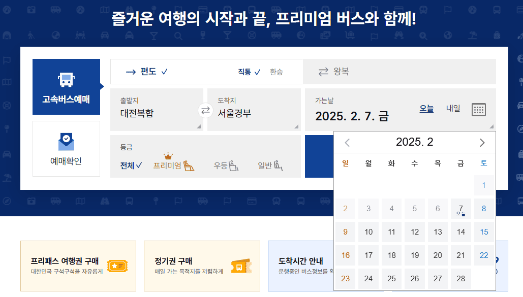 2. 출발지 및 도착지 선택: 출발지에 '대전'을 선택하고, 원하는 도착지를 선택합니다.