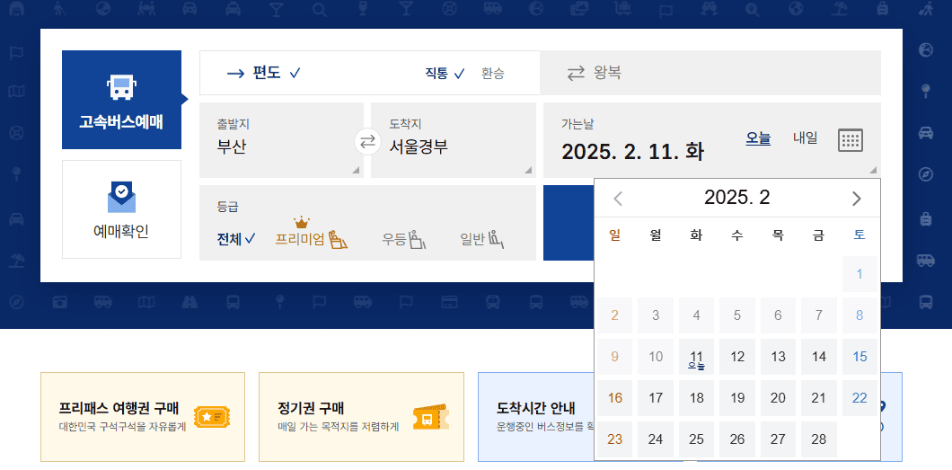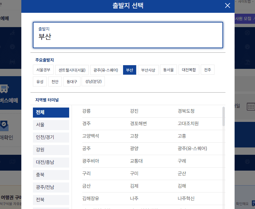 2. 출발지 : 부산, 도착지 : 원하는 지역을 선택합니다.