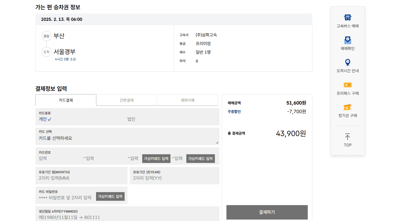 - 고속버스통합예매 사이트: KOBUS에서 예약 가능