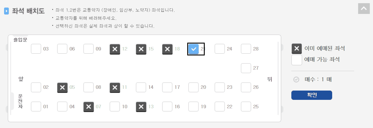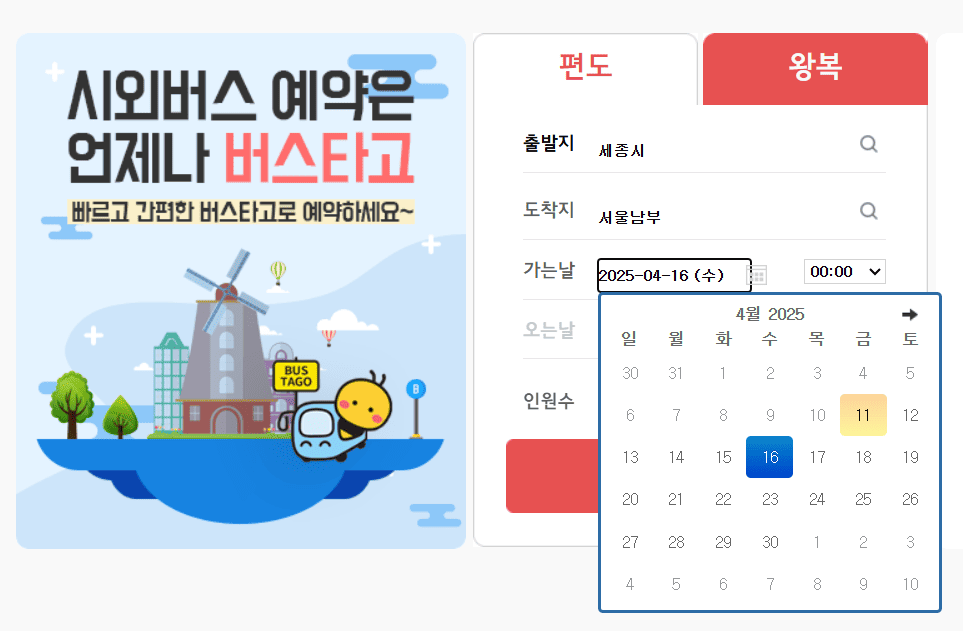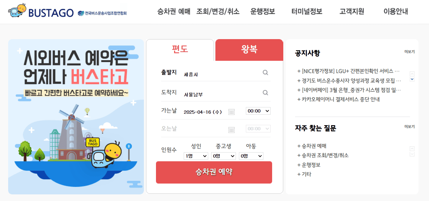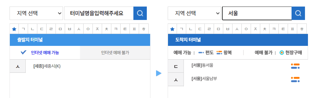 * 예매 가능 시간은 출발 최소 1시간 전까지입니다.