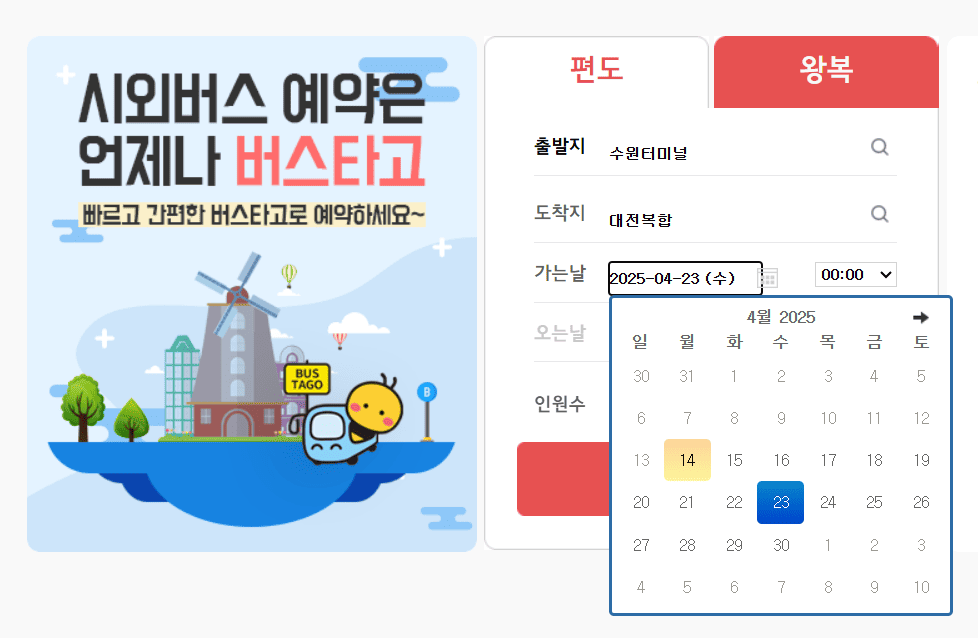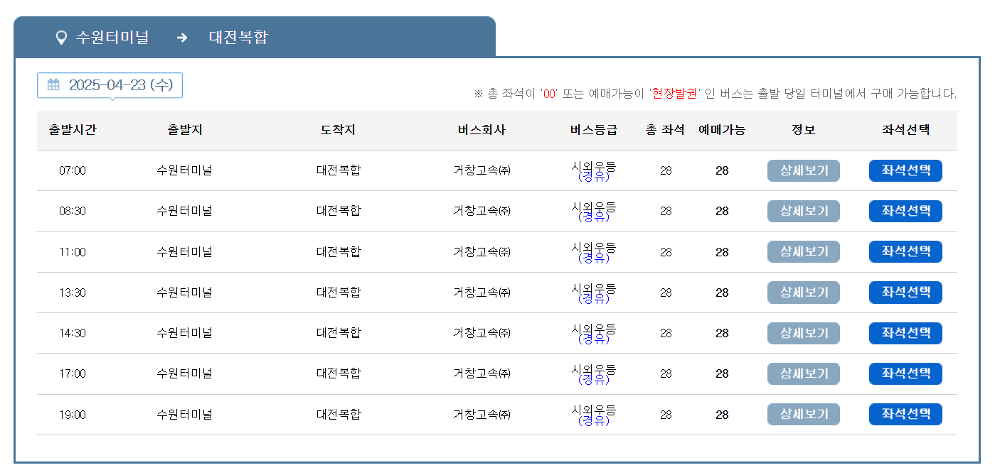 대전행 버스 시간표