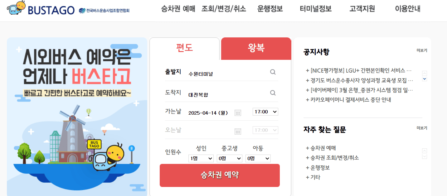 1) 버스타고 PC 홈페이지에 접속합니다.
