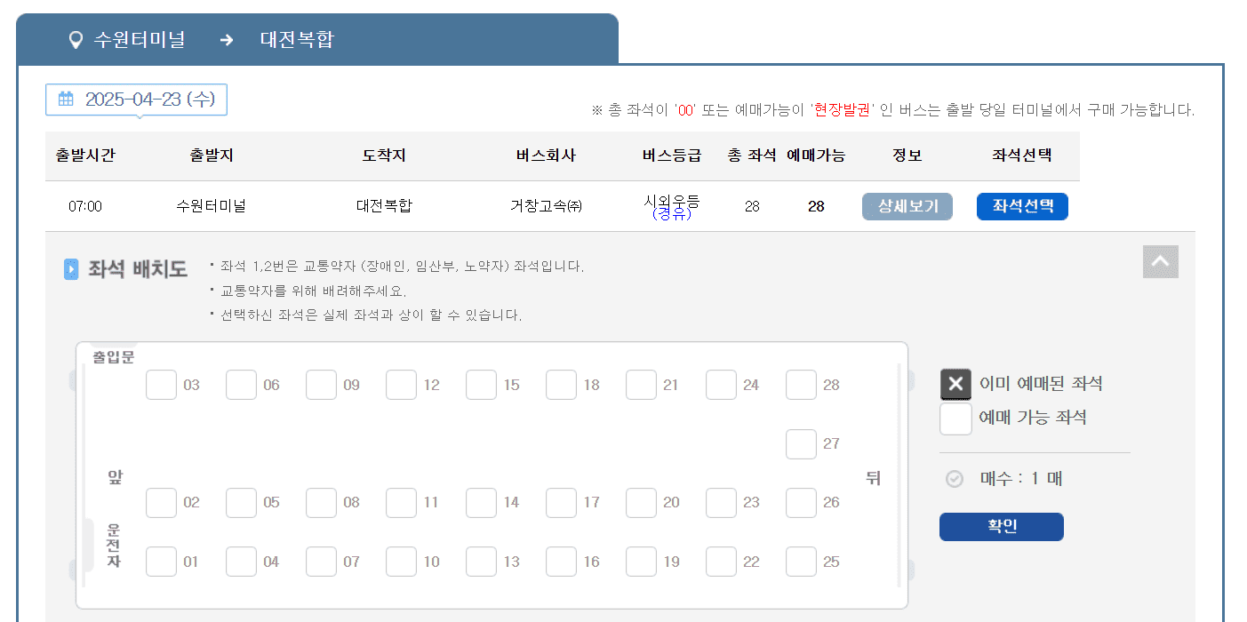 - 출발 시간 확인: 출발 시간보다 최소 10분 전에 도착하여 대기하세요.