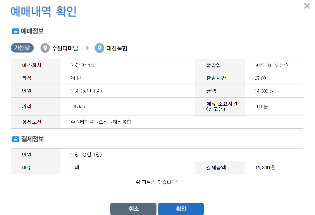 | 12:30 | 14:15 | 우등 | 14,300원 | 01:45 |