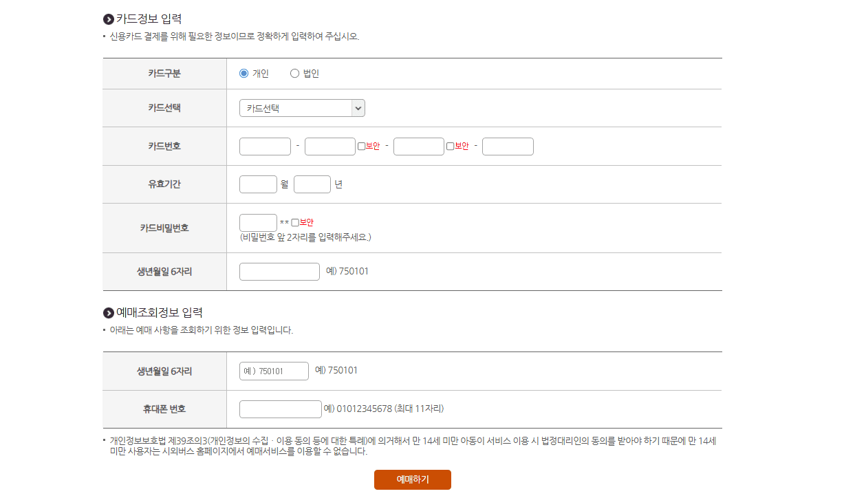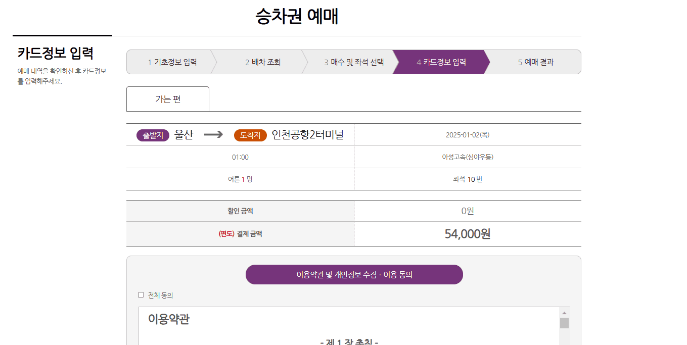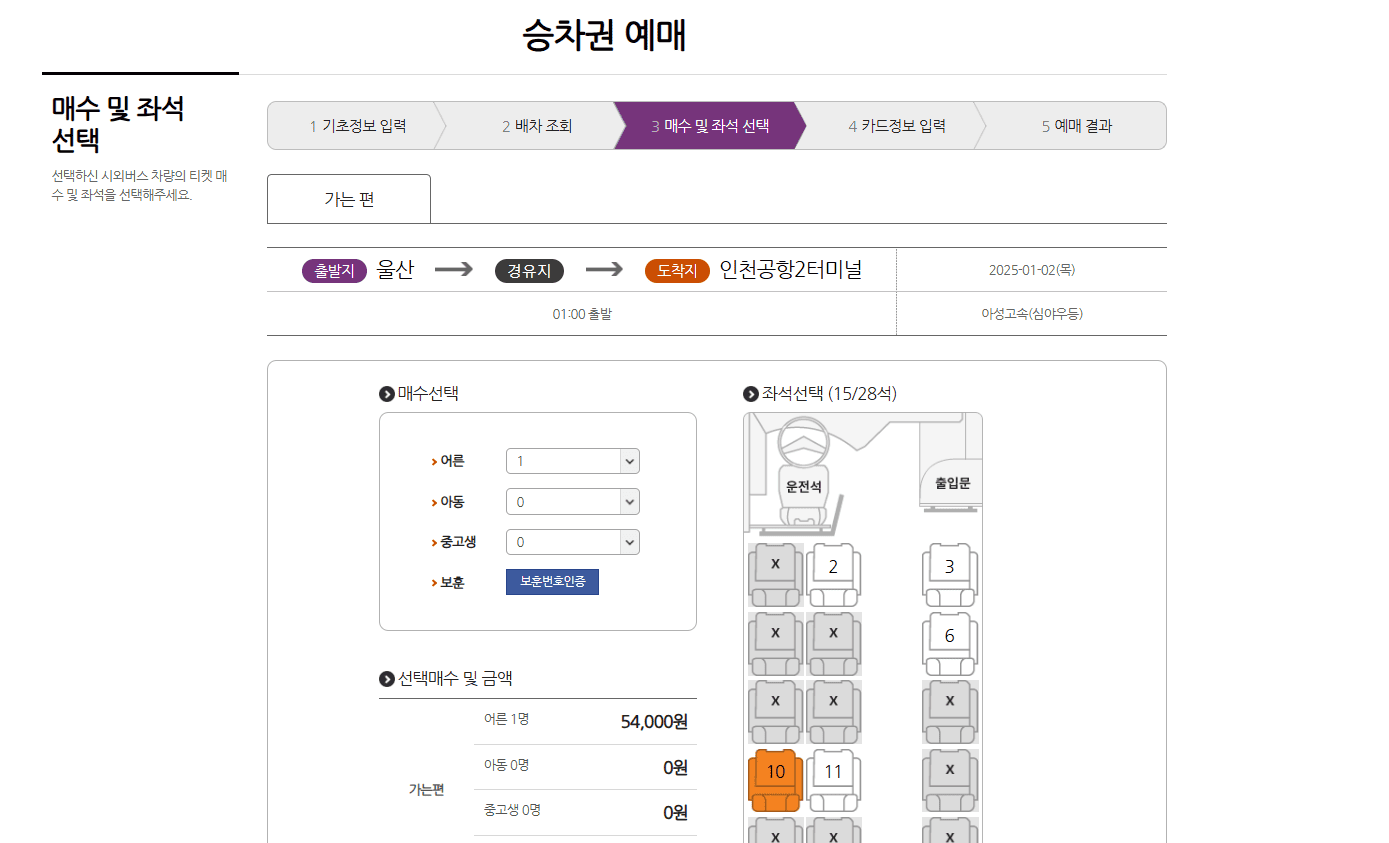 5. 승객 정보 입력: 이름, 연락처 등 필요한 정보를 입력합니다.