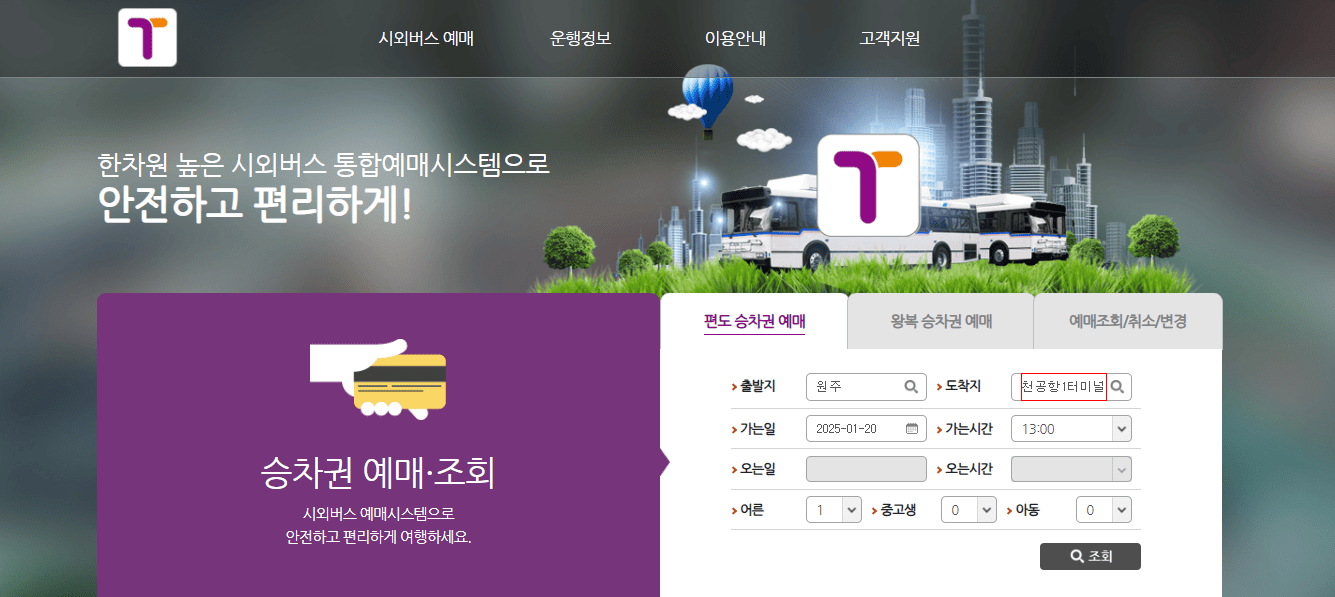 - 티머니 '시외버스 통합예매' 웹사이트 이용