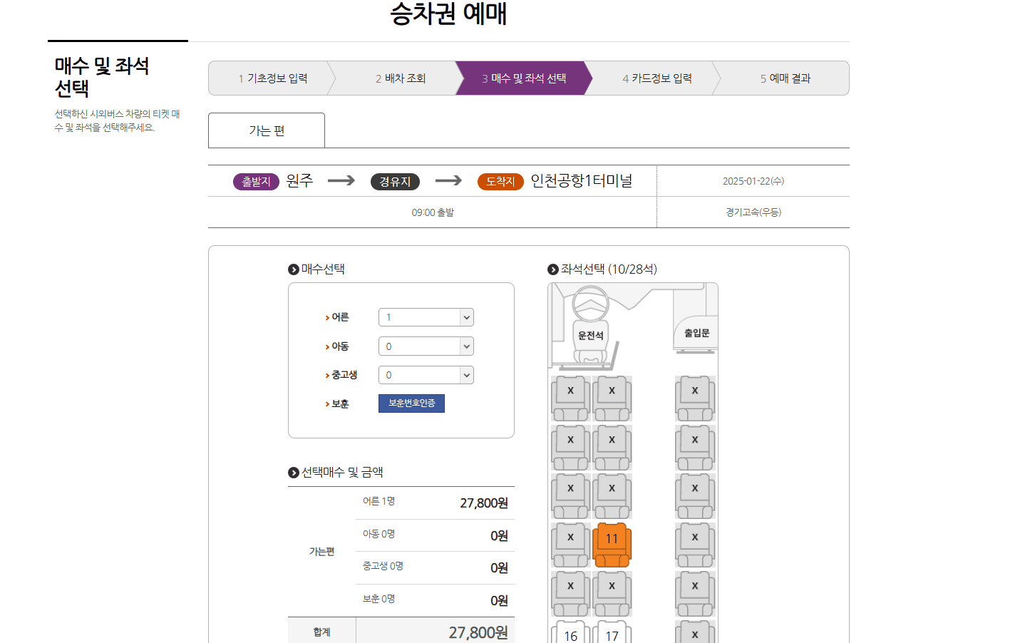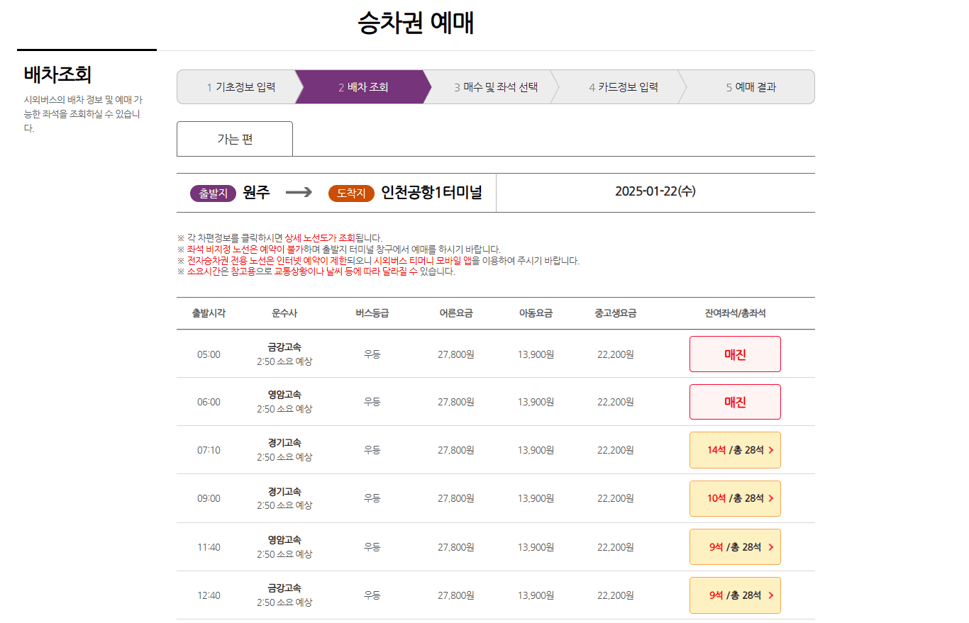 4. 원하는 시간대의 버스를 선택합니다.