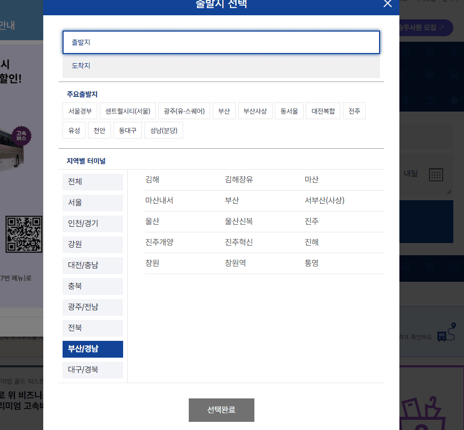 2. 출발지, 도착지를 선택합니다.