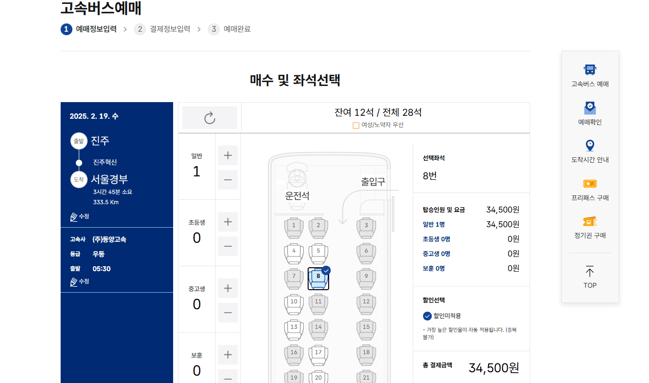 - 출발 직전 잔여 좌석 확인 가능