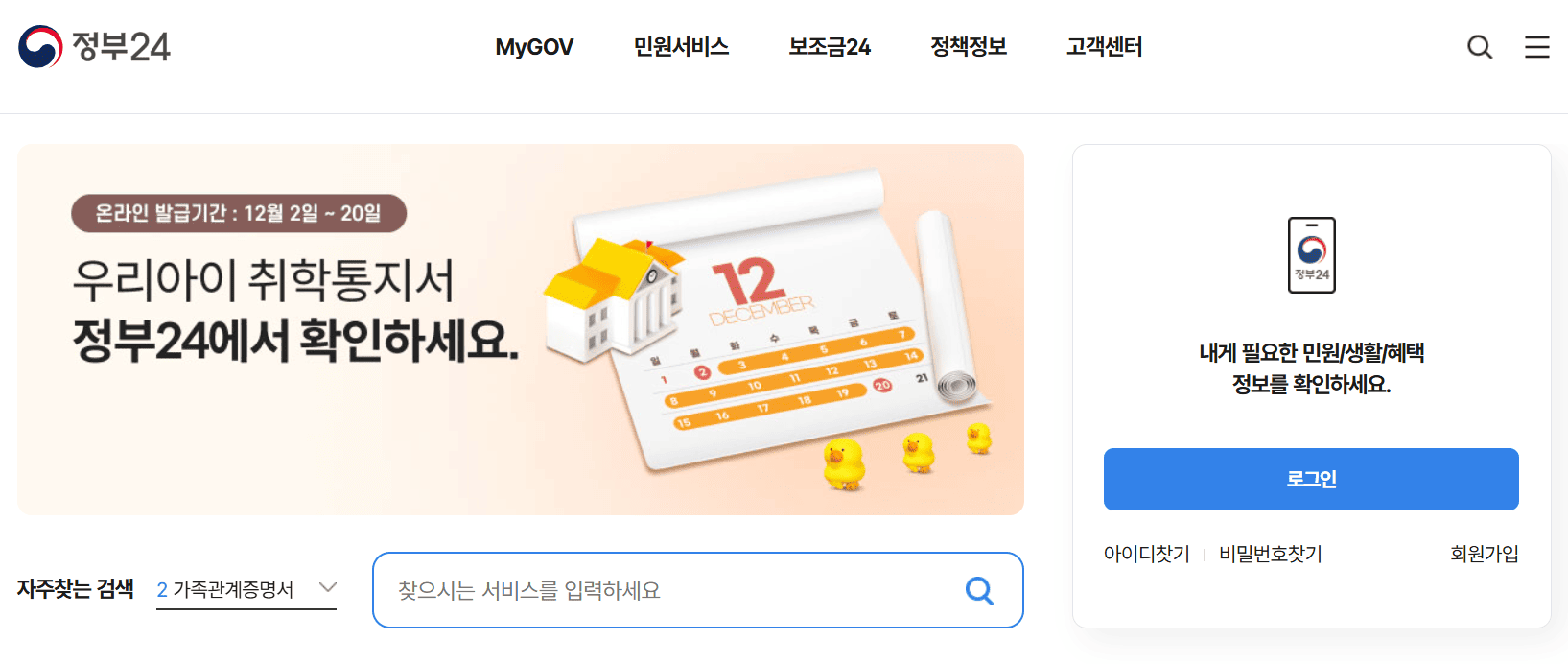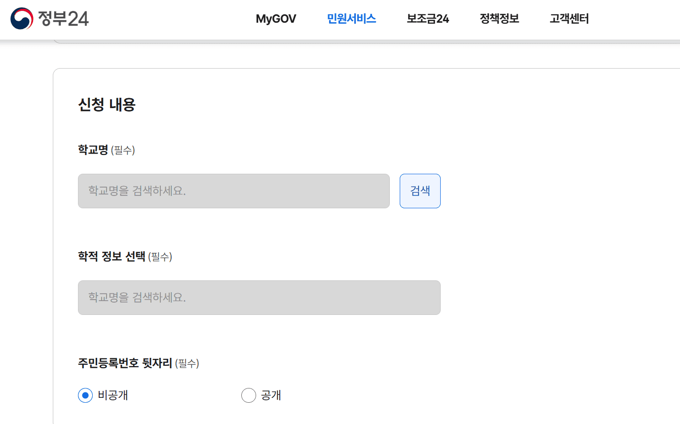 - 유치원 및 대학교(원) 관련 증명서는 해당 서비스에서 발급되지 않습니다.